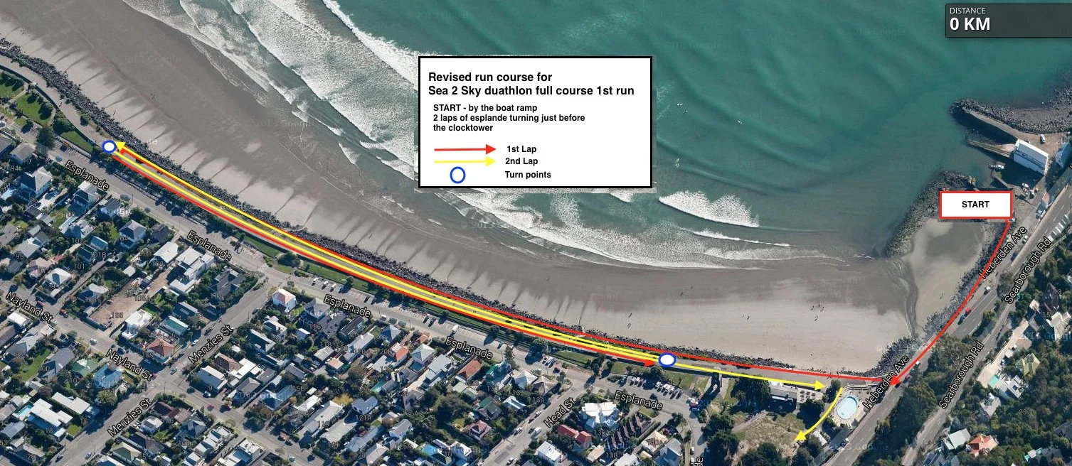 Upon exiting transition you will run straight on towards the gun emplacements then turn left onto the Godley Head Track which takes you all the way to Taylors Mistake. You will run along the beach then join the Taylors Mistake track. As you climb along the track will encounter some steps and steep pitches on this narrow track. The track exits across the road from Nicholson Park. Cross the road and enter Nicholson park, follow track down the hill to Whitewash Head Rd where you turn left. At the bottom of Whitewash Head Rd going the footpath running towards the promenade. After joining the promenade run past the finish line ~50m, turn and run back down the finish chute.