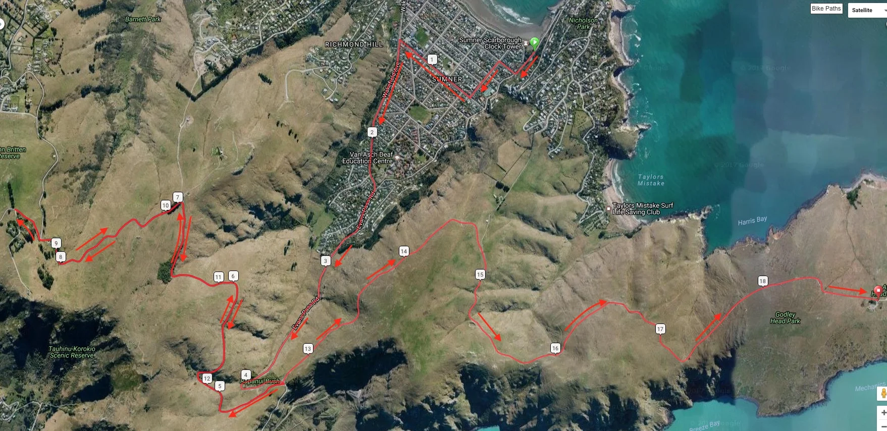 From the Scarborough Domain you will zig zag through Sumner before heading up Evans Pass. The total elevation gained on the bike leg is 500m.